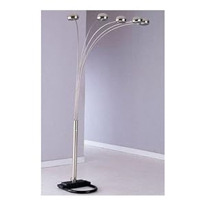 5 BALL ARM ARC LAMP CHRO. 82"H Metal Floor Lamp w/Strong Balanced Weighted Stable Base This elegant hanging five arm Peacock Floor Lamp with Nickel end offers sufficient light-weight whereas conserving floor area. This lamp is meant to suit in any corner or against a wall which will match any space decor setting. Makes an excellent lighting addition to any decor setting. Specifications: All metal framing with black end Brass plated knob sort on/off/dimmer switch mounted on the front of the lamp post (approx. 30" higher than floor level) serious weighted matching base to insure lamp stability Uses 5 40-watt sort B bulbs (bulbs included) UL listed, 120 volt, sixty HZ easy Assembly needed.